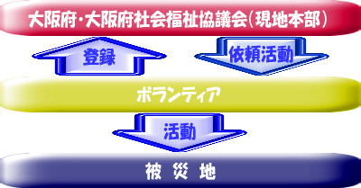 この反省を活かすため、大阪府では関係機関との協力のもと、災害発生時にボランティアの迅速な受入れや活動環境の整備を進めるため、平成9年3月末に「災害時におけるボランティア活動支援制度」を創設しました。