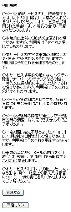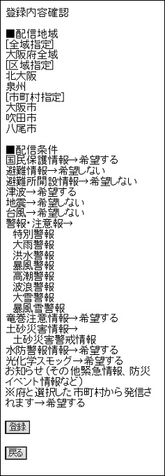 気象・地震・津波情報、災害時の避難勧告・指示などの防災情報について、メールで配信するものです。